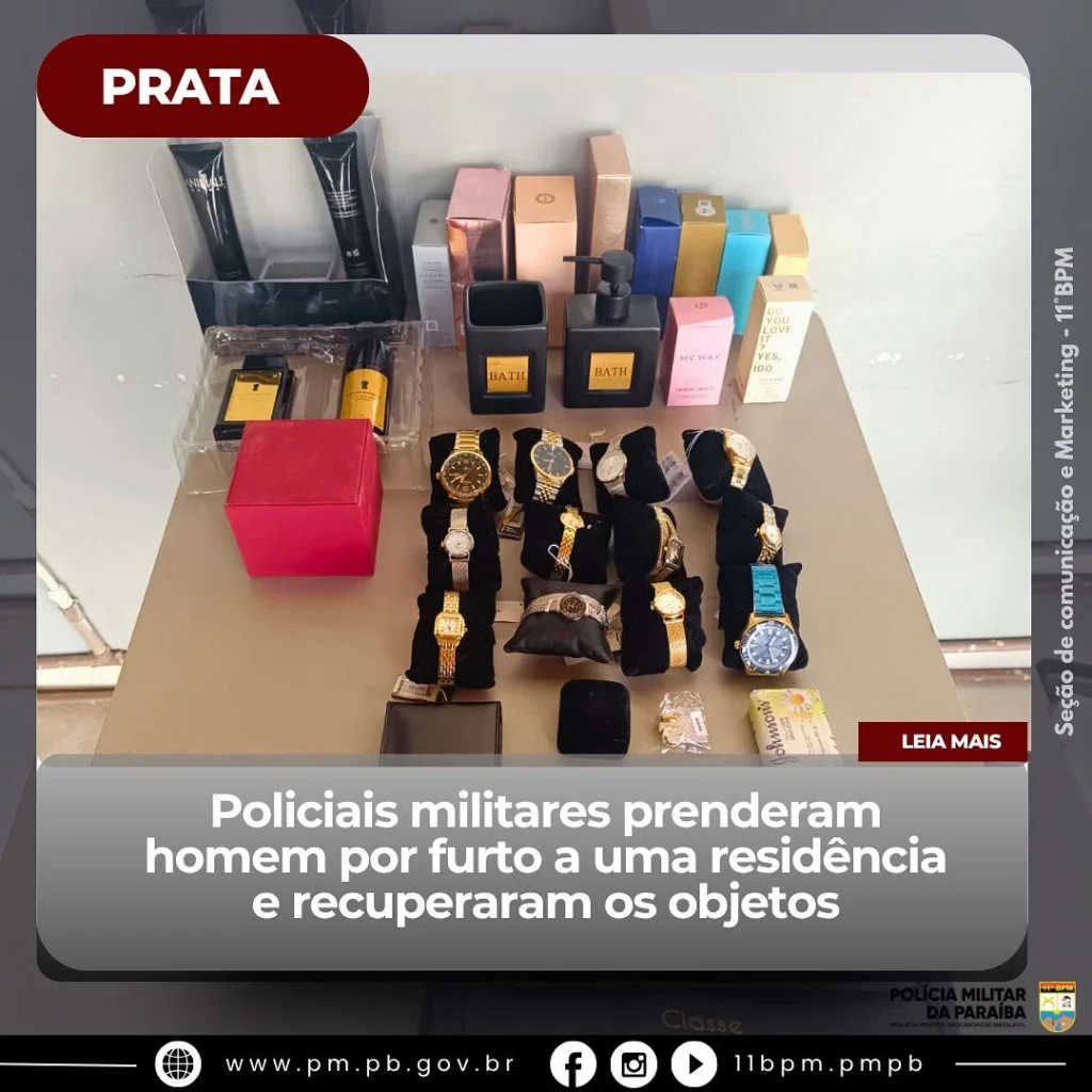 Nesta segunda-feira, 13 de outubro, policiais militares do 11º Batalhão prenderam um homem e recuperaram diversos objetos que haviam sido furtados de uma residência na cidade da Prata, no Cariri paraibano.