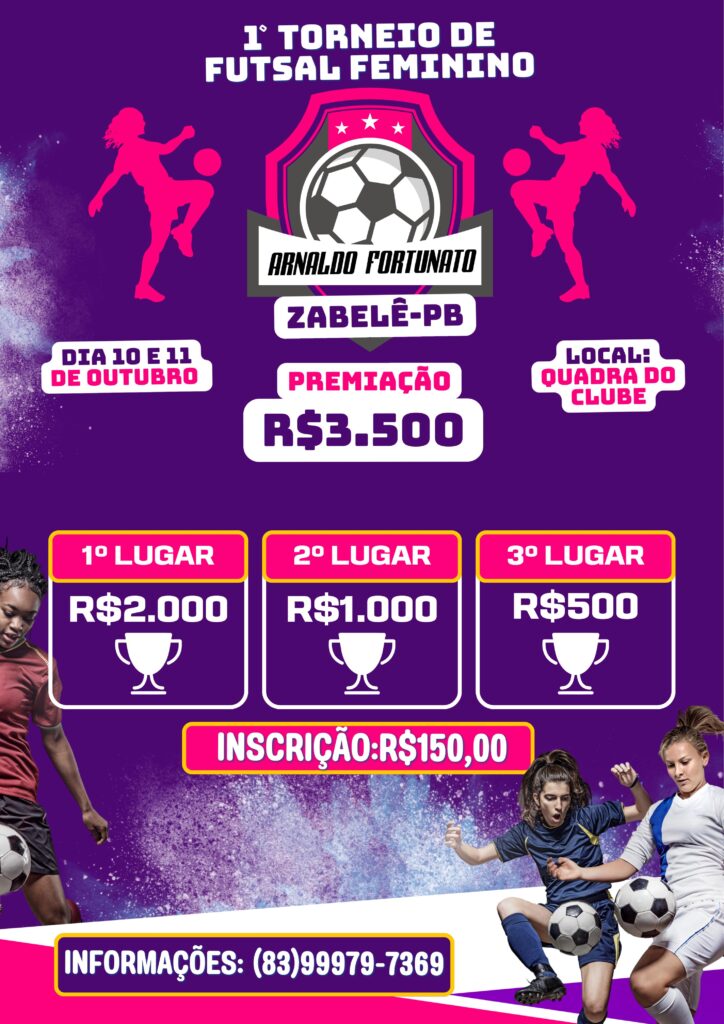 A cidade de Zabelê, no interior da Paraíba, se prepara para sediar o 1º Torneio de Futsal Feminino Arnaldo Fortunato, nos dias 10 e 11 de outubro. O evento promete movimentar a região e incentivar ainda mais o esporte feminino, oferecendo uma premiação total de R$ 3.500,00 para os times vencedores.